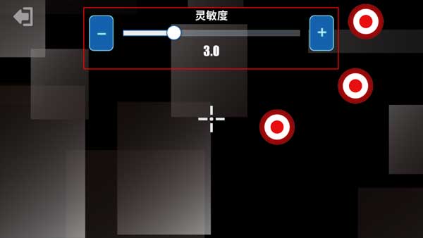 当中间出现了很多红色的靶子之后,玩家需要用右边的按钮来移动准星来瞄准靶子,然后用左边的枪射击它。