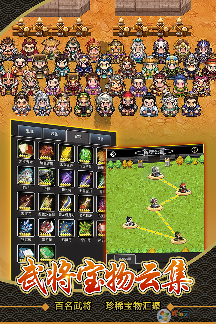 随着剧情的深入,主公可以学习更多的武将阵型与技能,还可解锁宝物特效;