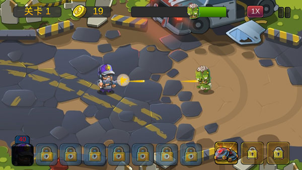 塔防游戏起源比较早,从智能手机刚开始普及的时候就已经有很多好玩的塔防游戏,塔防游戏玩法一般都差不多,主要不同就在于游戏画面以及任务剧情等细节上的差异,塔防游戏看起来玩法很无脑简单,但是随着关卡的深入,想要顺利过关还是需要一定的策略组织能力的,这类游戏也很适合闲暇之余消磨打法时间。而小编今天带来的这款:僵尸行动队2,不仅在剧情上,符合了大众口味的英雄挑战,并且丰富养成的八大特色兵种之间的协同作战,极大增强了玩家的塔防游戏嗜好,为此小编整理了一个关于这款游戏的简单玩法,下面一起进入了解一下吧。这款游戏中在玩法上同植物大战僵尸所类似,都是通过安排防御来抵御僵尸一波接一波的进攻,而不同的一点在于,这里没有的收集太阳的功能,而且通过消灭僵尸后的掉落金币来购买兵种协防,而每个兵种的购买力不同,因此在购买选择上玩家要斟酌,在这里若能成功购买兵种的话,玩家可将其放置在僵尸来往的线路进行防御,如图: