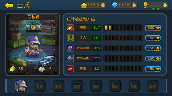 在完成关卡挑战后,玩家可以前往菜单的主界面下,点击兵种,并进入兵种的属性界面图中,进行兵种的威力强化,而这里针对兵种的伤害、生命、攻击速度乃至攻击范围都能升级强化,升级过后的兵种会增加更强的战斗力。
