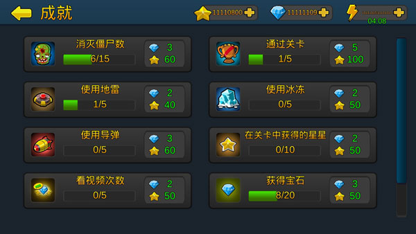 游戏中还增加了成就系统的奖励制度,完成指定的挑战目标便可获取大量的奖励,通过这些奖励可以帮助你快速的强化兵种,并升级技能哦。