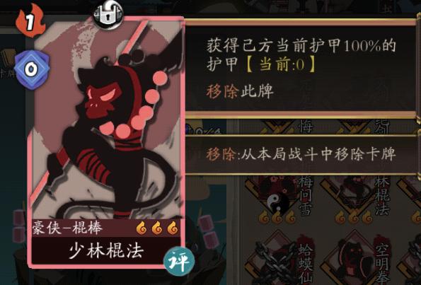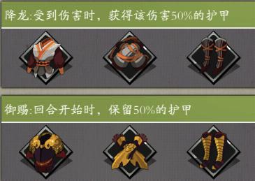 在形成具体套路前,游戏里的防御牌处于一个非常尴尬的境地——由于敌我双方大部分都是攻击属性高而防御属性低,在攻击牌能吃到巨额【攻击相关】加成的同时,防御牌往往只能提供尴尬的寥寥数点护甲,性价比相对来说极其低下,可能只在洪七公之类的免伤关卡,或者特殊的卡组构造中才有足够的存在感。