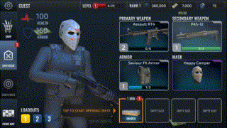 游戏支持玩家自由装扮,装扮主要由主武器、副武器、防弹服和头套组成,