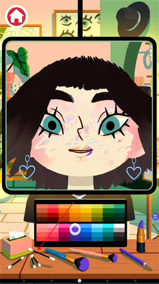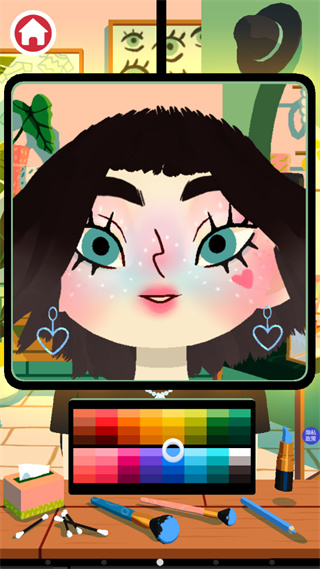头发剪少了一块怎么办,这个玩家也不用担心的,我们直接的进行点击红色的瓶子就是生发剂,玩家使用生发剂来帮助自己恢复头发就行了。 游戏玩法自由性很大的,我们随意的选择喜欢的进行试玩,游戏中的人物还会撒娇这个也是比较有趣的。 要化妆的话直接点击桌面上的道具,找到眼影盘就可以化妆了。