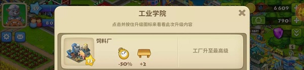 在本阶段中,小镇工厂的升级目标主要是饲料厂,根据小翔的经验,最好一次性将饲料厂升级到顶(13级),以彻底解决动物饲养场的饲料供应问题。