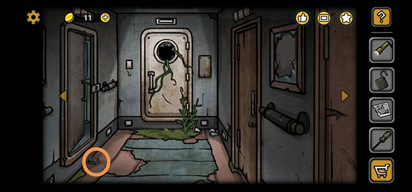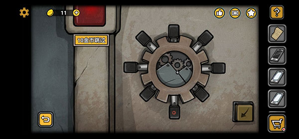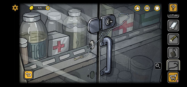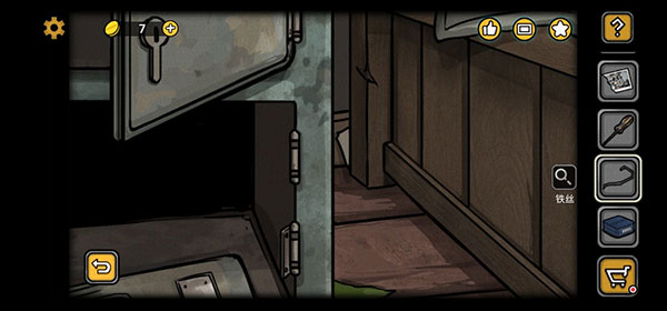我们回到最初待着的房间,点击大门,用钳子剪断连着的地方,新区域get√