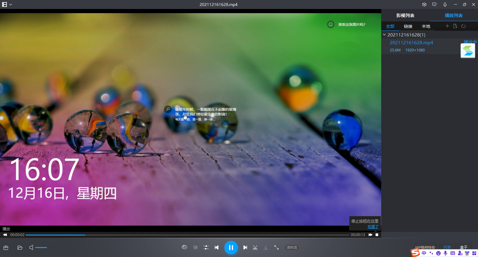 打开暴风影音软件,播放一个视频。