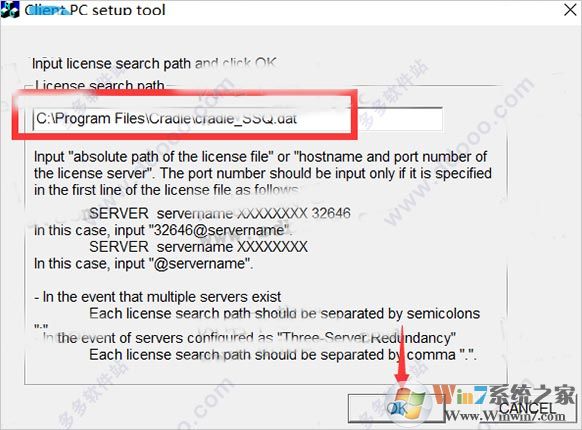 15、继续运行开始菜单License Tools > Client PC setup Tool,输入 "C:\Program Files\Cradle\cradle_SSQ.dat"