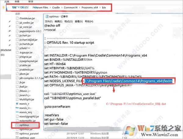 13、以记事本打开 C:\ Program Files \ Cradle \ Common14 \ Programs_x64 \ bin \ optimus.bat,找到NOESIS_LICENSE_FILE=..........,修改为NOESIS_LICENSE_FILE=C:\Program Files\Cradle\cradle_SSQ.dat