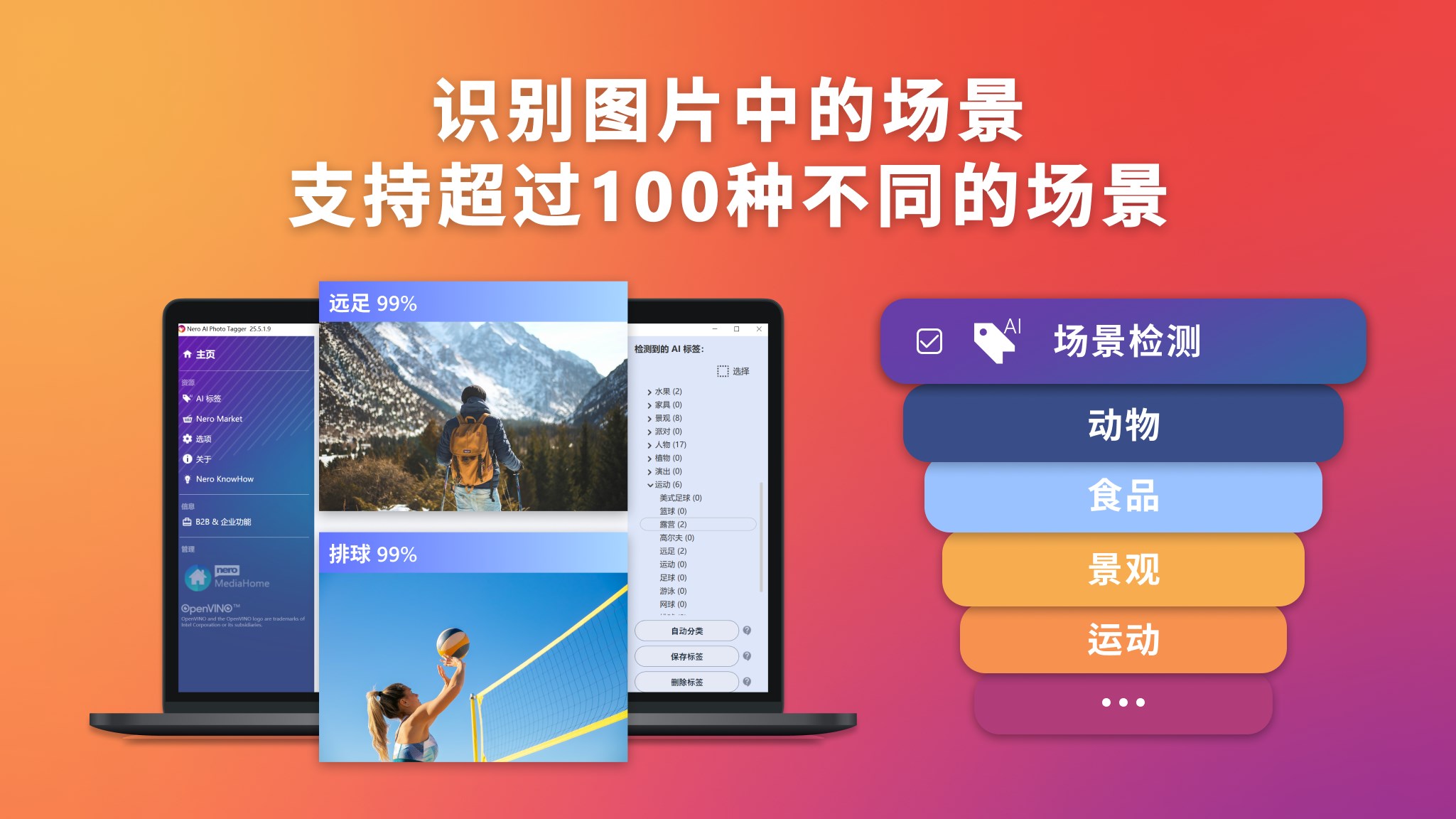 Nero AI Photo Tagger是一款专业的多媒体管理工具,该软件借助了先进的AI人工智能技术能更高效帮助用户管理照片,同时Nero AI Photo Tagger还具备自动识别照片的技术,能识别照片中超一百种类别,能进一步提高办公效率,其次该软件还采用了英特尔®OpenVINO™技术更是极大程度上提高了运行处理的速度,让用户能更专注于创作本身,Nero AI Photo Tagger是一款非常实用的软件,赶快下载试试吧!