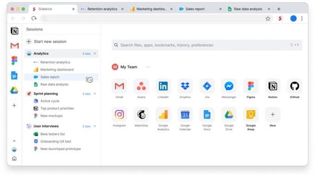 Sidekick建立在最新版本的Chrome之上,并支持所有Chrome功能和扩展程序。但是,作为专注于生产力的浏览器,Sidekick添加了: