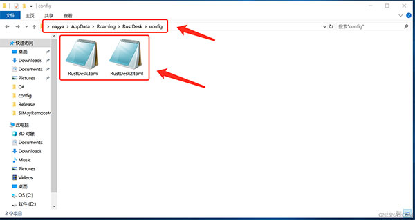 找到RustDesk目录下config目录中的“RustDesk.toml”和“RustDesk2.toml”文件;
