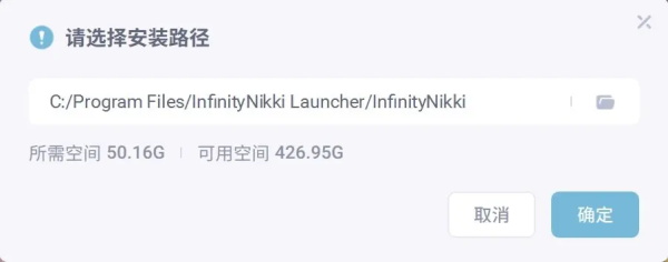 2、选择安装路径(推荐安装到固态硬盘中),注意剩余空间是否足够,建议预留60GB以上空间;如无更改,点击【确定】下载游戏资源。