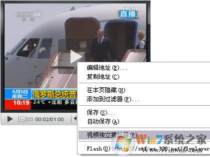 Flash,Windows Media Player,Real Player播放器上都可以使用“视频独立播放器”。