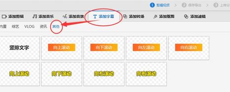 d、竖排字幕&滚动字幕:专业模式下——添加字幕——“其他”分类下可进行自主选择