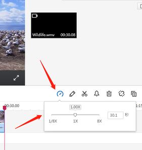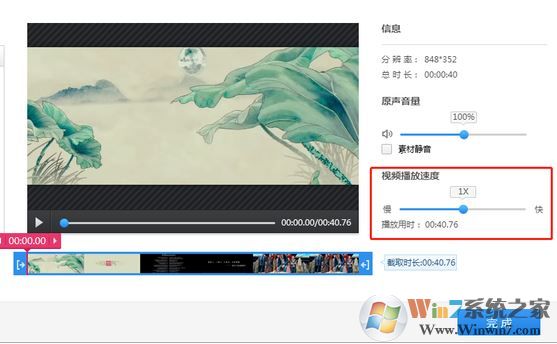 ①快速模式下进入视频片段的基础设置,可以选择不同的视频播放速度。