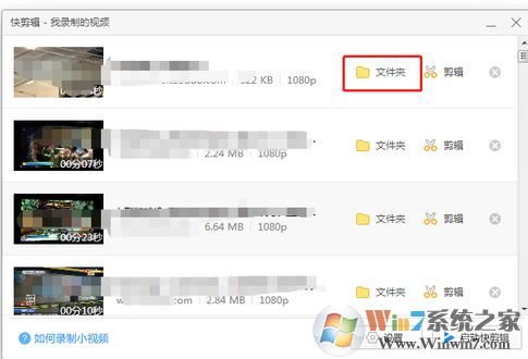 在视频文件管理页面可以点击文件夹图标,打开视频文件所在的文件夹。
