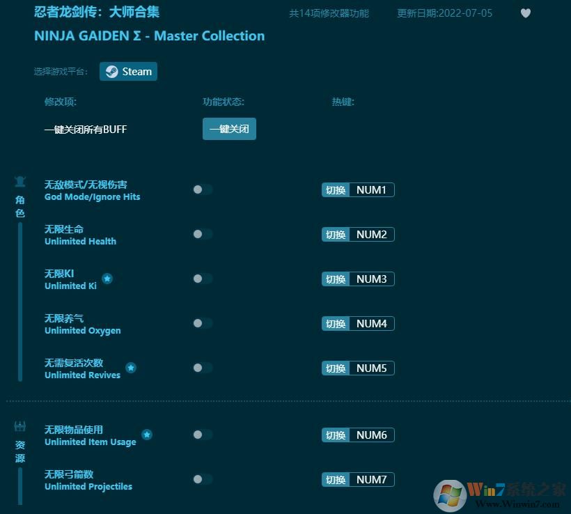 忍者龙剑传大师修改器功能说明: