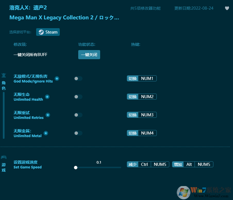 洛克人X遗产2修改器功能: