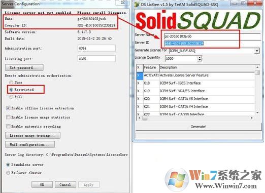 9、双击打开打开solidSQUAD文件夹下的DSLS文件夹里的:DSLicSrv文件,把localhost改成你的计算机全名,保存。