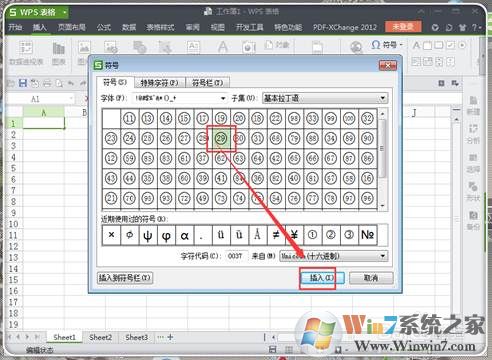 5、带圈的字体出来了,随便点击喜欢的,然后点击“插入”。
