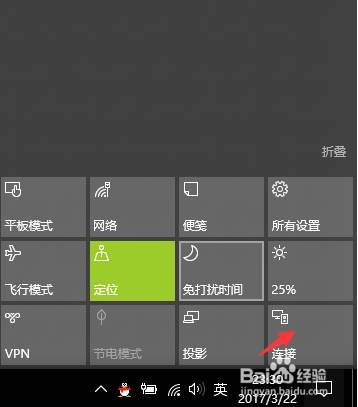 1、首先确保手机和电脑在同一个无线网络下;然后在电脑打开操作中心点连接
