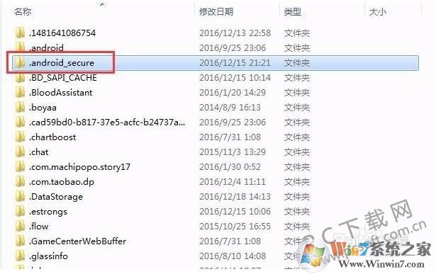 4.然后双击打开这个可移动磁盘,会进入下图中的页面,然后大家需要在SD目录中找到.android_secure文件夹,如下图所示,就在红框选中的位置,然后删除名为"smdl2tmp1.asec"的文件。