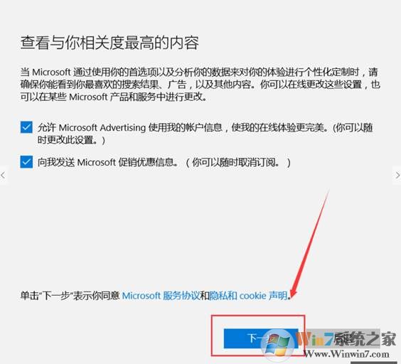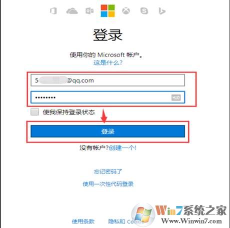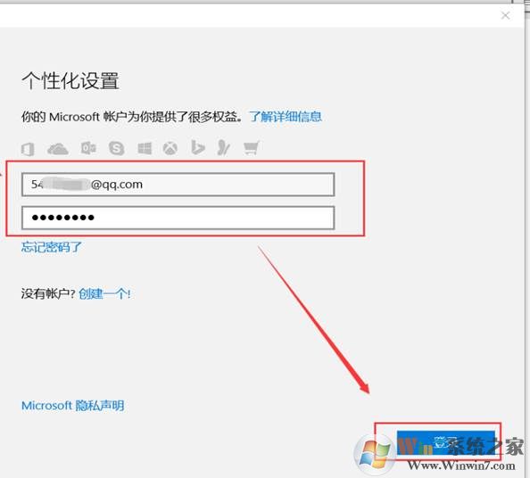 3、 在窗口中输入账户信息及微软账户的密码,选择“下一步”,如图: