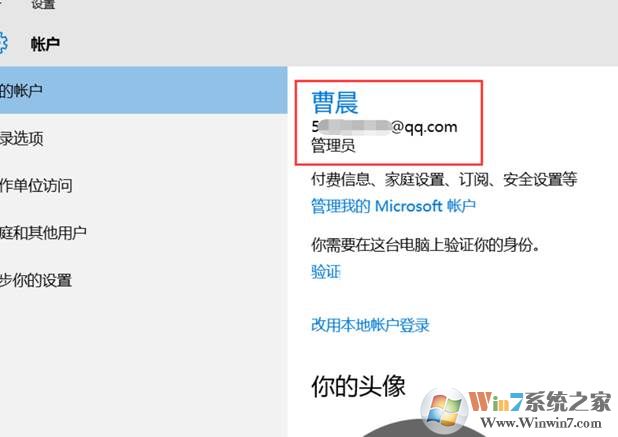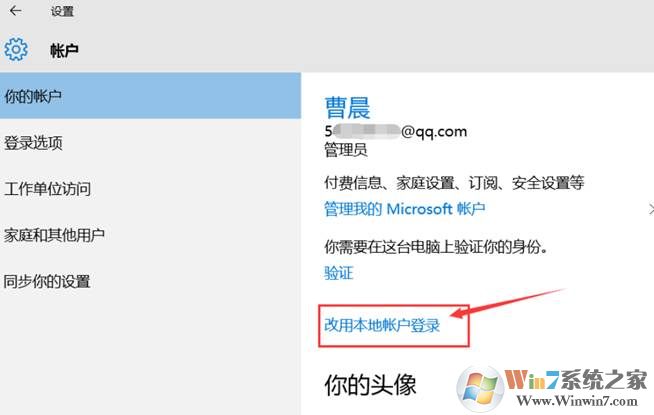 1、 在设置——账户——你的账户下选择“改用本地账户登录”,如图: