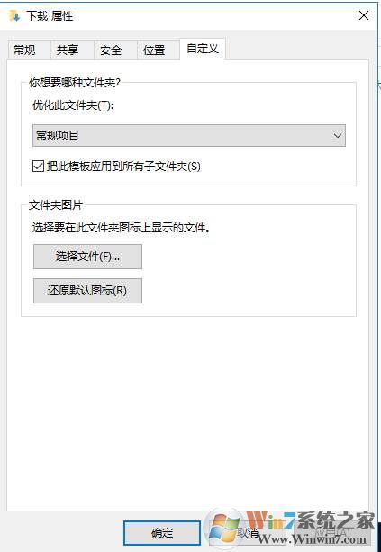 2、在自定义选项卡下,选择常规项目,并且勾选 把此模板应用到所有子文件夹(S) 选项,确定;
