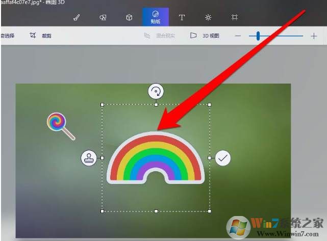 6、将贴贴纸放在图片上,还可以进行操作。