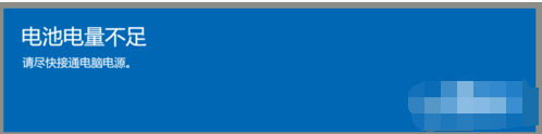 5,把电量消耗在这个水平以下的时候,收到了“电池电量不足”的提示框。先别急着关掉它,此时接入电源适配器(充电器)。