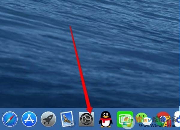 1、首先我们在系统下方Dock面板上找到设置按钮,单击此按钮进入到设置界面