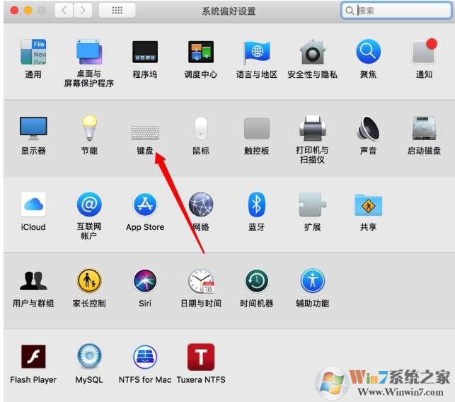 2、在设置面板中键盘,单击此图标进入到键盘配置界面
