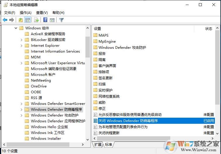 2、展开--管理模板--Windows组件--Windows defender防病毒程序;