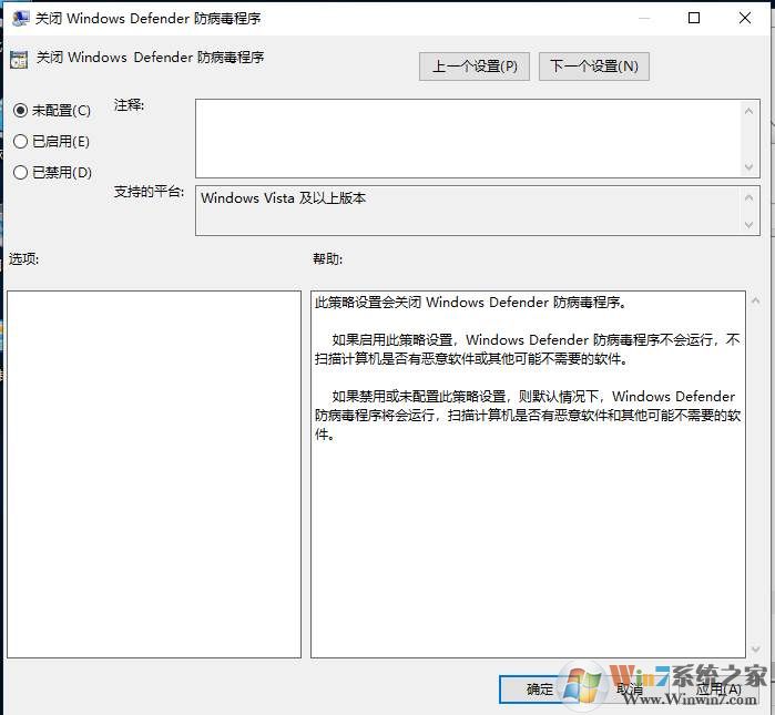 3、双击打开Windows Defender防病毒程序,然后设置为未配置或禁用即可。