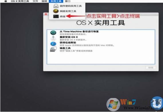 2、点击实用工具>点击终端