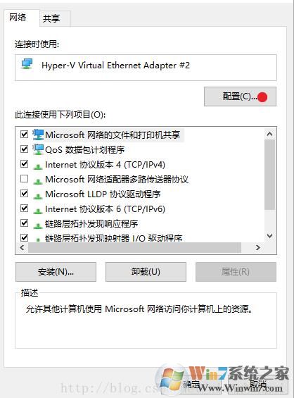 3、进入网络属性后,再点击配置按钮;