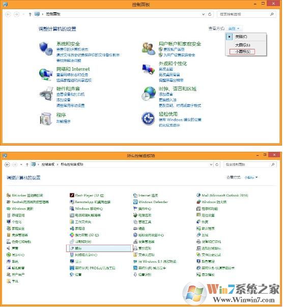 第一步:打开控制面板(Win10可以在任务栏搜索“控制面板”打开),将查看的方式改为小图标,并找到【鼠标】选项: