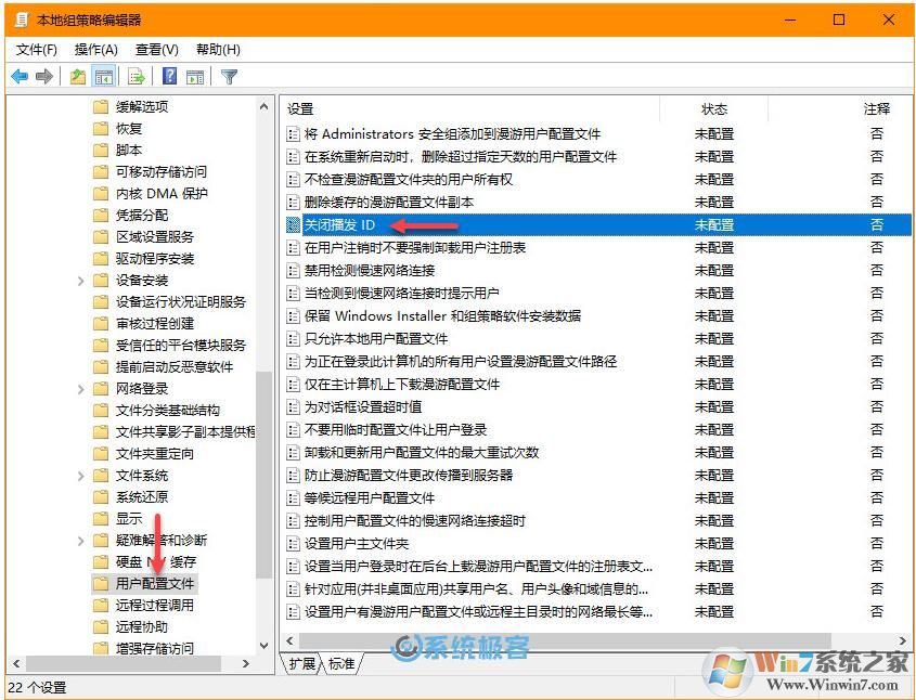 「计算机配置」——「管理模板」——「系统」——「用户配置文件」