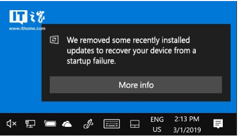 “我们删除了一些最近安装的更新,以便从启动失败中恢复设备,”该消息显示。
