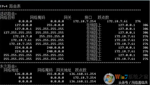 完成相关配置后,命令行输入route print可以查看当前电脑的路由配置,如下图所示