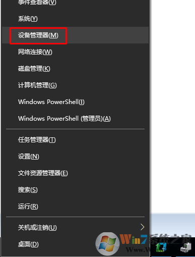 Win10系统打开设备管理器方法一和Win7一样,还有一个新的方法就是WIN+X(或右键菜单开始菜单)这时主菜单中就有一个设备管理器了,如下图