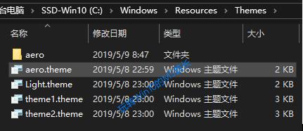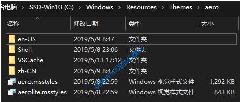 1、进入Win10系统的 C:\Windows\Resources\Themes\aero 主题目录,你会看到有aero.msstyles和aerolite.msstyles两个Windows视觉样式文件