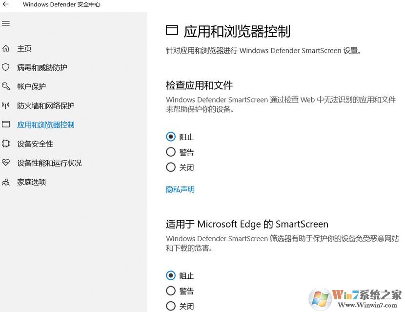 针对win10系统Windows defender应用和浏览器控制关闭后自动“阻止”的问题,winwin7给大家分享一下解决方法!