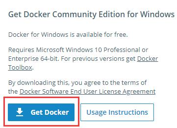 Docker下载地址为:https://store.docker.com/editions/community/docker-ce-desktop-windows 打开网页之后点击如图 Get docker处即可下载安装包: