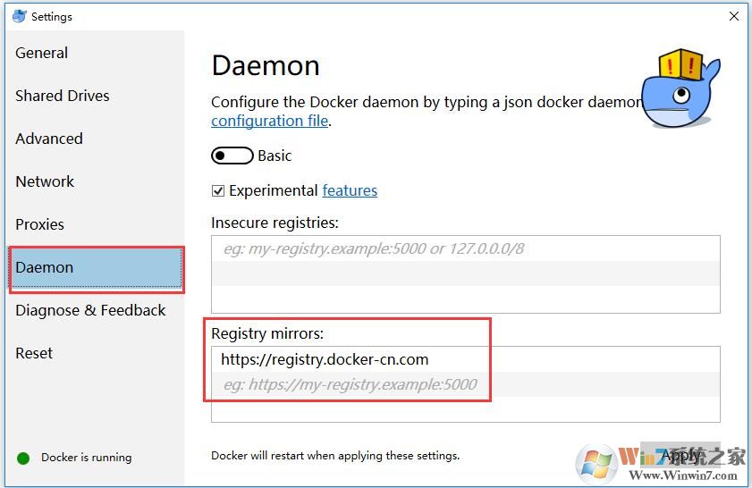 点击Apply后会重启Docker。