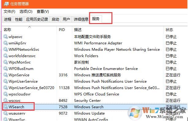 然后在服务界面之后,找到并重新启动wservice服务,这个服务是管搜索的!