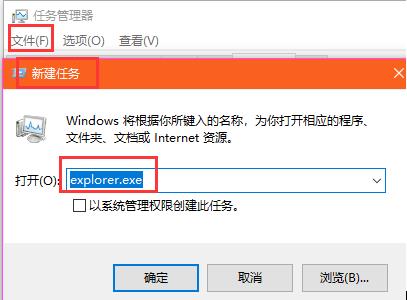 (2)在文件中选中运行新任务,输入explorer.exe点击运行