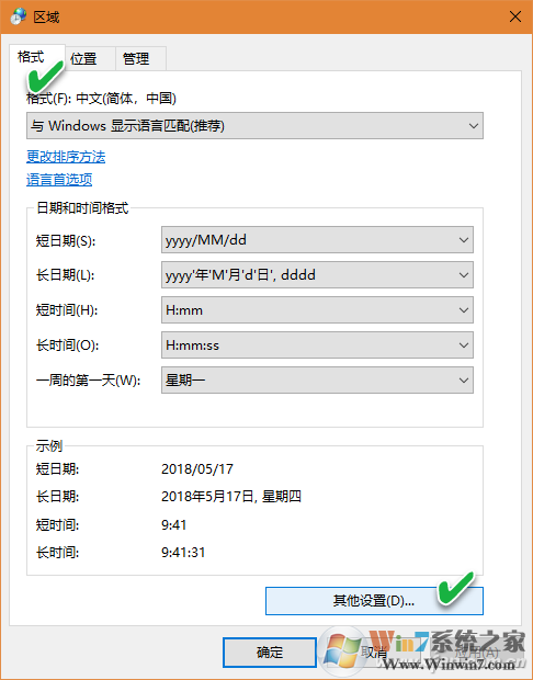 4、在“区域”设置窗口中的“格式”选项卡,点击“其他设置”按钮(图4);